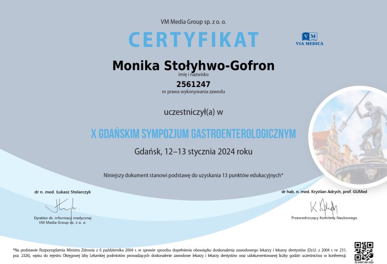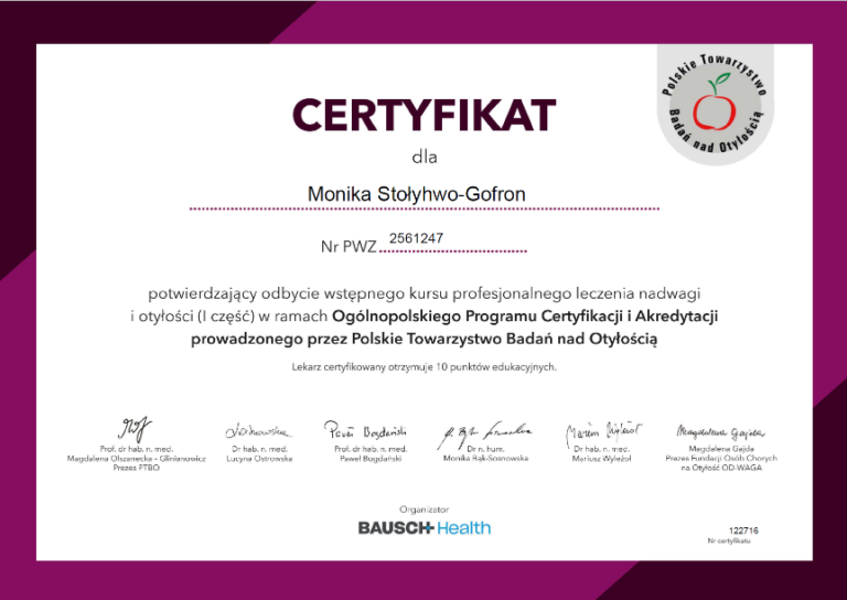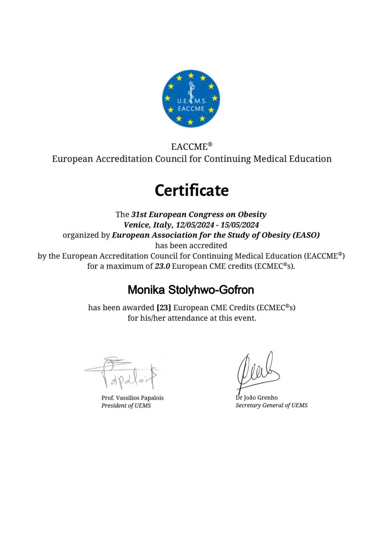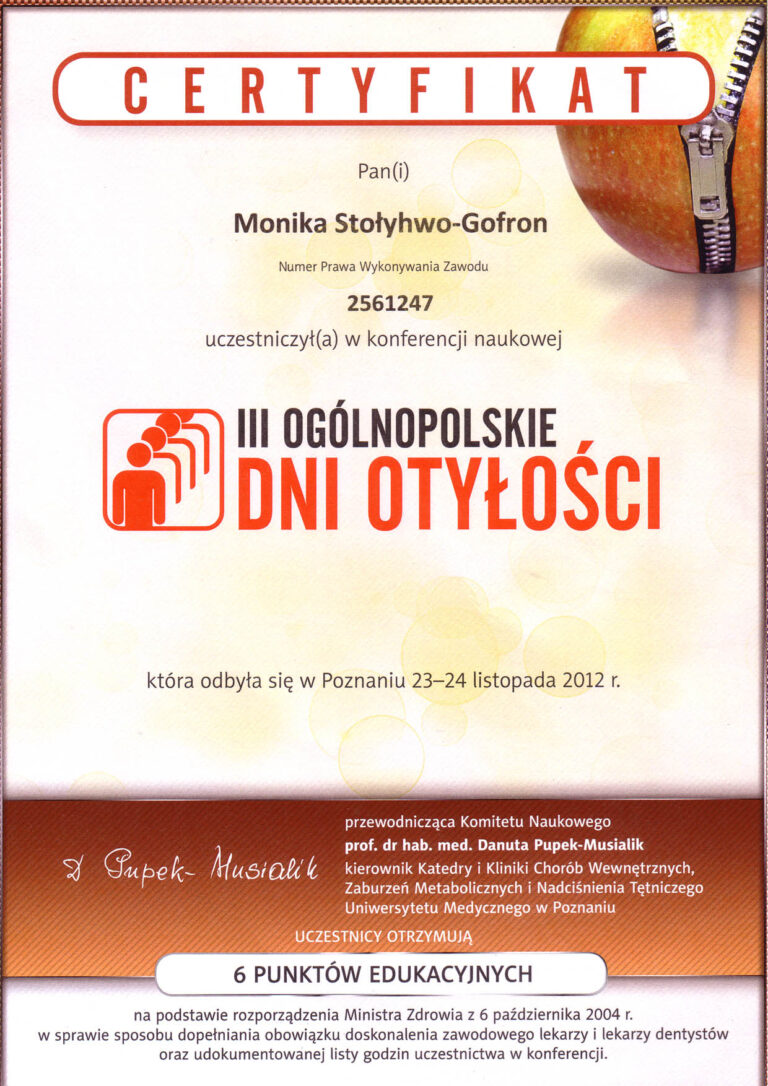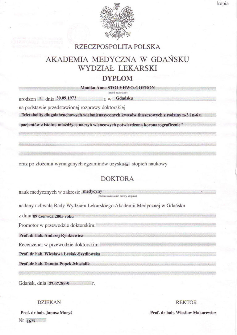 Monika Stołyhwo-Gofron Dr nauk medycznych